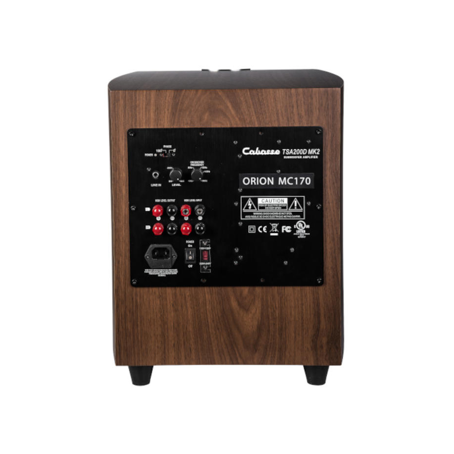 Активный сабвуфер Orion оснащен 21-см басовым драйвером 21MT и встроенным усилителем мощностью 200 Вт (400 Вт пиковая), что позволяет ему выдавать увесистые басы в диапазоне 35 – 200 Гц.