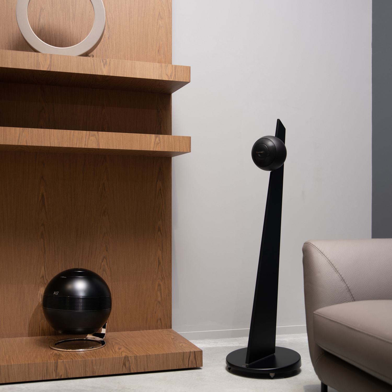 The Pearl Sub имеет изысканную парящую конструкцию, которая опирается на хромированное стальное кольцо, удерживающее сабвуфер в воздухе. 4 слоя матовой краски обеспечивают идеальную визуализацию сферической формы корпуса. На задней панели помещены четыре акустических клеммы с углеродным покрытием, позволяющие запитать колонки номинальной мощностью до 300 Вт.