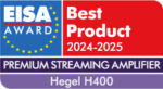 В сезоне 2024-2025 Hegel H400 стал обладателем премии EISA в номинации «Премиальный стриминговый усилитель». Это одна из самых престижных наград в сфере аудио. Раздел «Аудиокомпоненты» присутствует в списке номинантов премии Экспертной Ассоциации Изображения и Звука (EISA) с 1992 года. На сегодняшний день EISA объединяет более полусотни специалистов из почти трёх десятков стран.