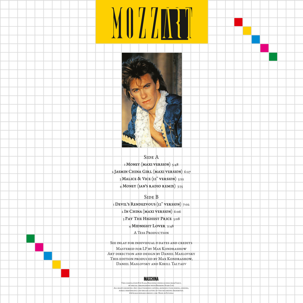 Коллекция синглов загадочного исполнителя, о песнях которого известно намного больше, чем о нём самом. Под этим псевдонимом скрывался певец из Сингапура по имени Ханс Франкл, а продюсировал его сам Fancy. Во второй половине 80-х под грифом Mozzart Франкл выпустил несколько хитов, в их числе — песни «Money», «Jasmin China Girl» и «Devil’s Rendezvous». Пластинка включит длинные версии этих треков, выходившие на 12-дюймовых синглах, а также композицию «Midnight Lover», которую Ханс выпустил под именем Пола Ландера.