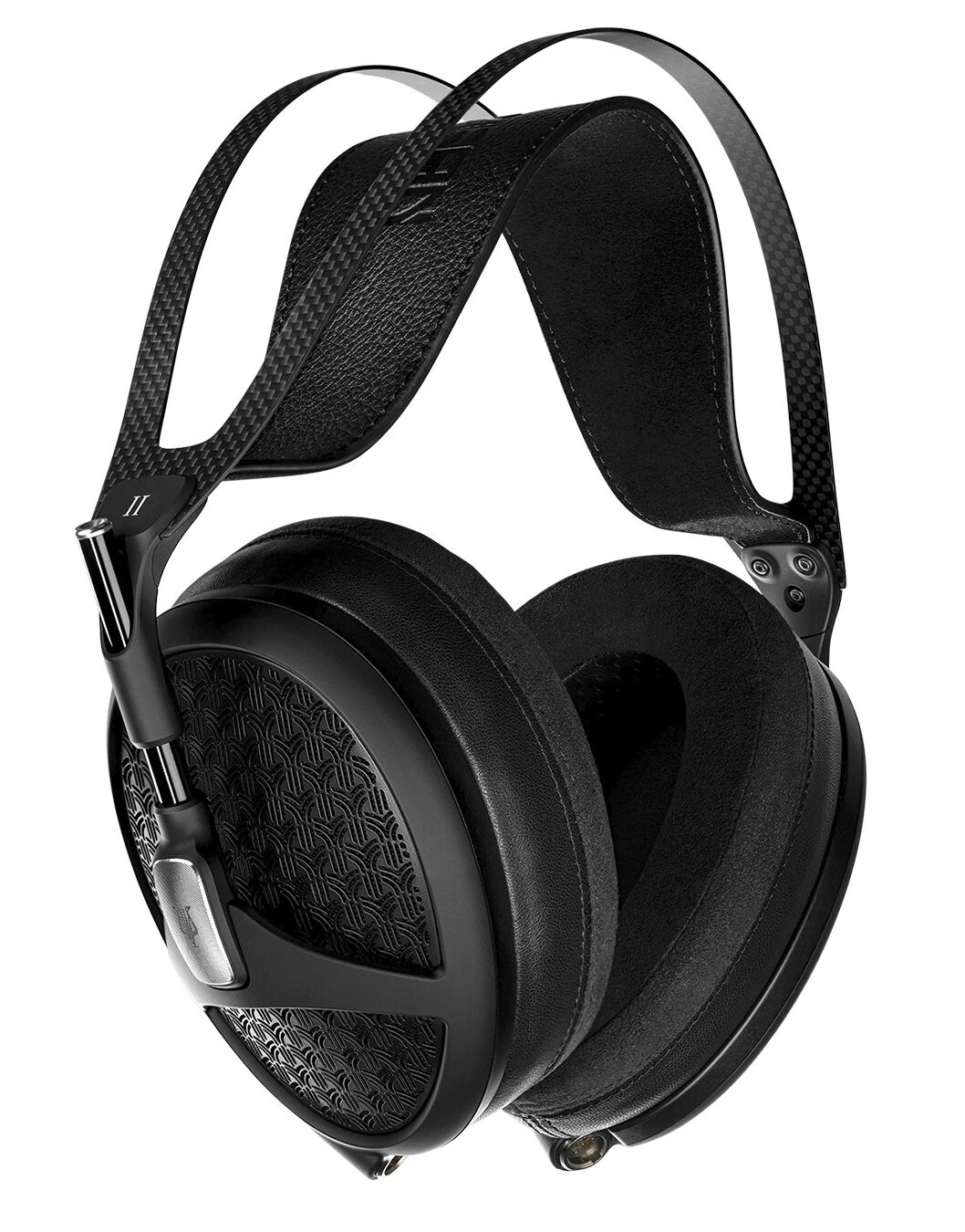 Meze Empyrean II – полноразмерные Hi-End наушники. Модель получила обновленный дизайн в полностью матово-чёрной отделке с тонкими серебряными вставками, алюминиевой решёткой в стиле «ар-деко» и оголовьем из натуральной кожи и карбона. За звук отвечают усовершенствованные изодинамические излучатели Isodynamic Hybrid Array от Rinaro Isodynamics размером 102-мм x 73-мм с активной областью 4650 мм в квадрате.