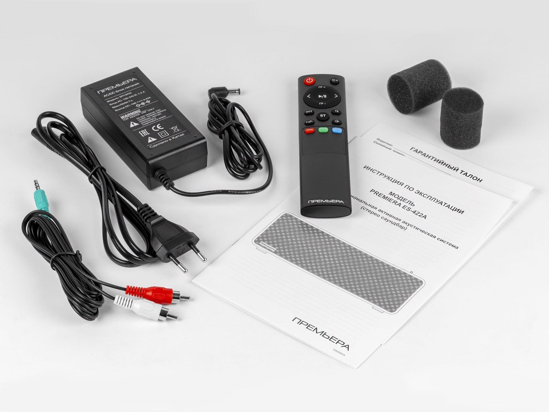 Premiera ES-422A — многофункциональная активная стерео акустическая система, которую производитель также описывает как саундбар. Модель предназначена для использования в качестве основной акустики для телевизора и других источников сигнала.