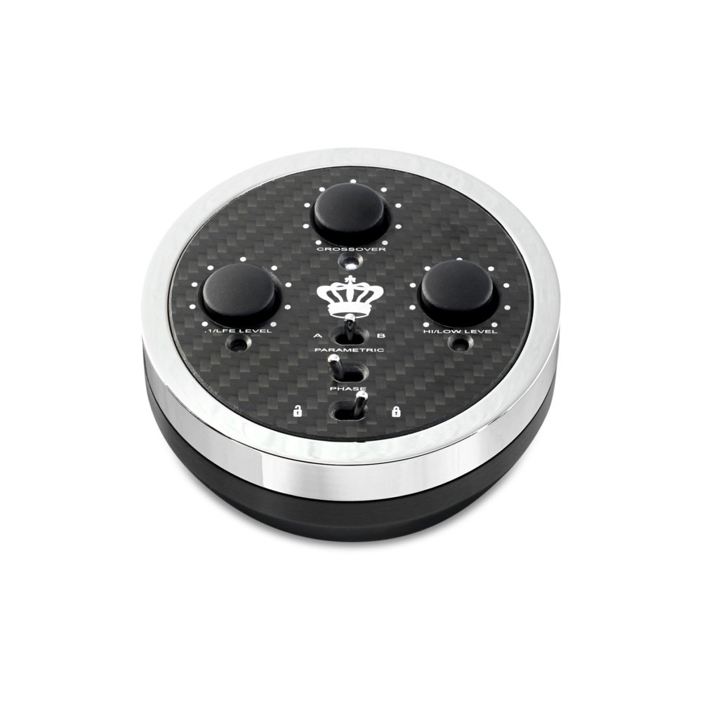 Ниже расположены три симпатичных металлических тумблера, отвечающих за важнейшие функции настройки. В нижней части находится переключатель включения/выключения пульта ДУ. Он расположен как можно дальше от дороги и остается включенным после включения, так и используется во время настройки без возможности случайного выключения. В центре находится регулятор фазы. Он используется только на начальном этапе для определения правильной фазы 0 или 180 градусов. Кроме того, сверху расположен двойной параметрический эквалайзер, обозначенный буквами A и B, позволяющий получить самые ровные и глубокие басы, а на другом конце диапазона низких частот – тонкую настройку поведения кроссовера. Это позволяет добиться идеального сочетания сабвуфера с основными колонками, а все остатки гула и резонанса, возникающие в помещении, можно аккуратно обрезать.