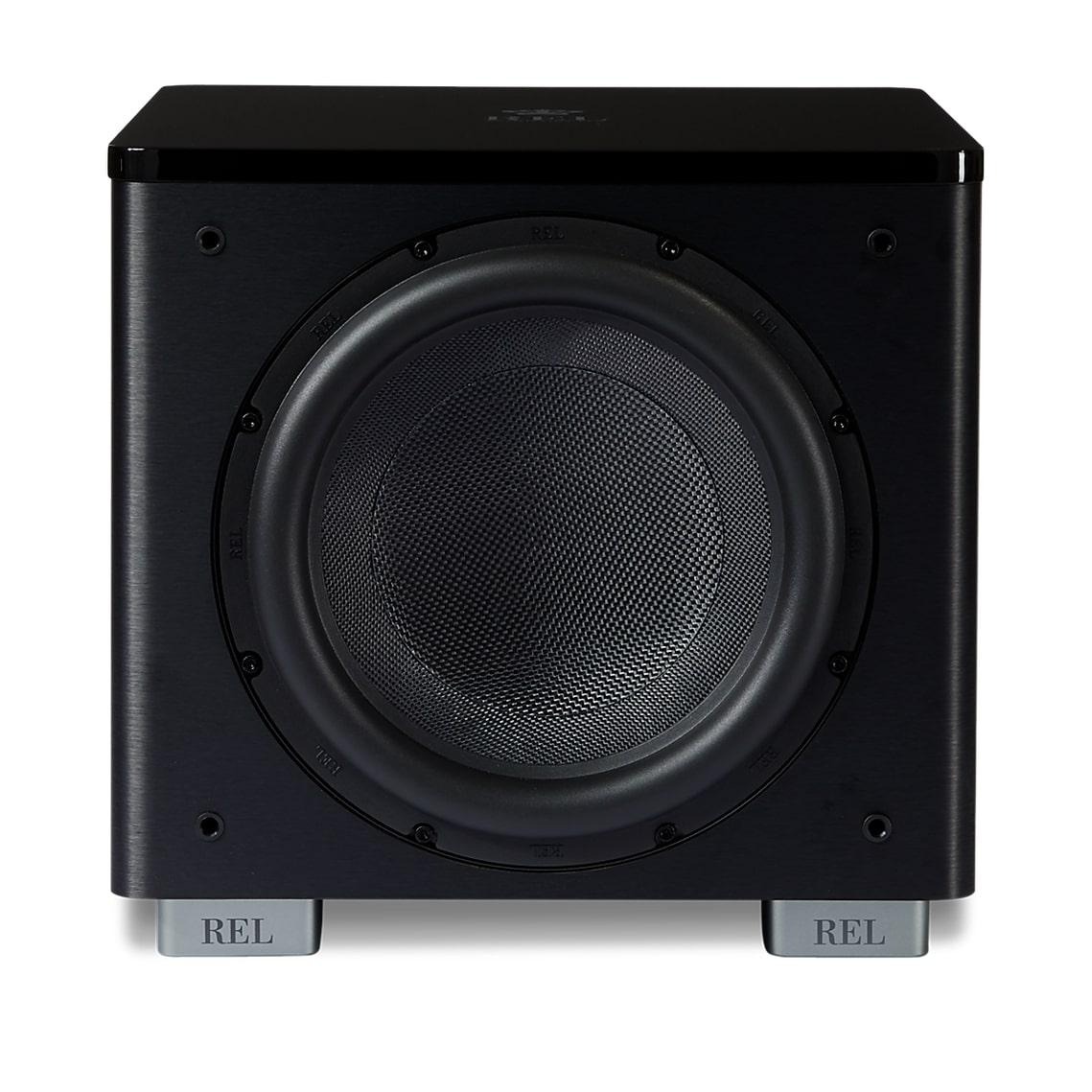 На передней панели сабвуфера REL HT1205 MK II смонтирован 12-дюймовый низкочастотный динамик с комбинированным диффузором CarbonGlas, легким и жестким, способным перемещаться с большой скоростью без изгиба поверхности. Подвес диффузора динамика выполнен из натуральной бутиловой резины, который обеспечивает его перемещение с большой амплитудой. Басовик изготовлен на массивном стальном шасси, противостоящее любым вибрациям и резонансам, и мощной магнитной системой. Динамик в сабвуфере подключен к усилителю мощностью 500 Вт, который работает в класса D и выполнен по фирменной схемотехнике NextGen5. Сигнал на усилитель подается с обновленного фильтра, характеристики которого были оптимизированы для использования в данной модели.