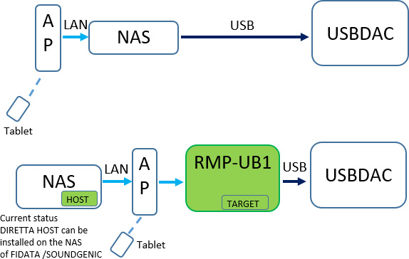 RMP-UB1EX / RMP-UB1SFPEX / RMP-UB1-KEX / RMP-UB1SFP-KEX созданы по технологии Diretta — новой сетевой системе аудиопередачи, где нагрузка на приёмник поддерживается постоянной.