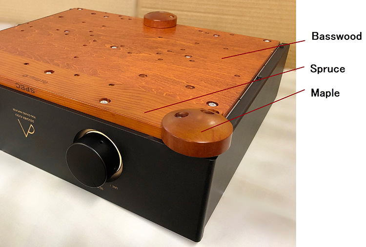 В конструкции используются басвуд и ель, которые работают подобно резонансной деке струнных инструментов и помогают формировать энергичный тембр. Шасси деликатно поддерживается элементами из клена, а подбор компонентов выполнен с акцентом на музыкальность и согласованность звучания.