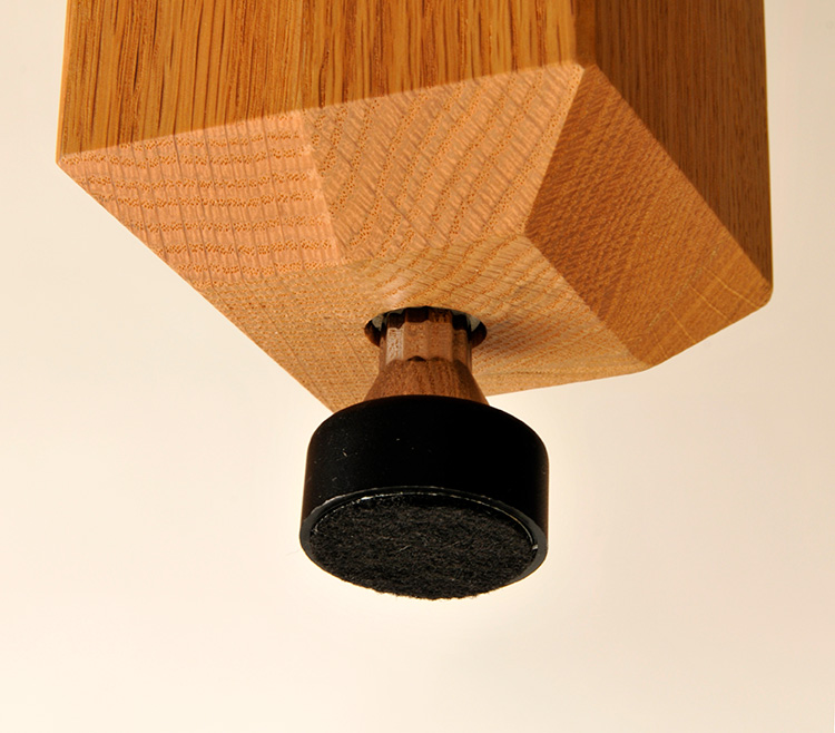 В качестве материала используется ламинированный красный дуб. Для развязки применяются точечные опоры-изоляторы, которые одновременно защищают поверхность установки и помогают бороться с вибрациями.