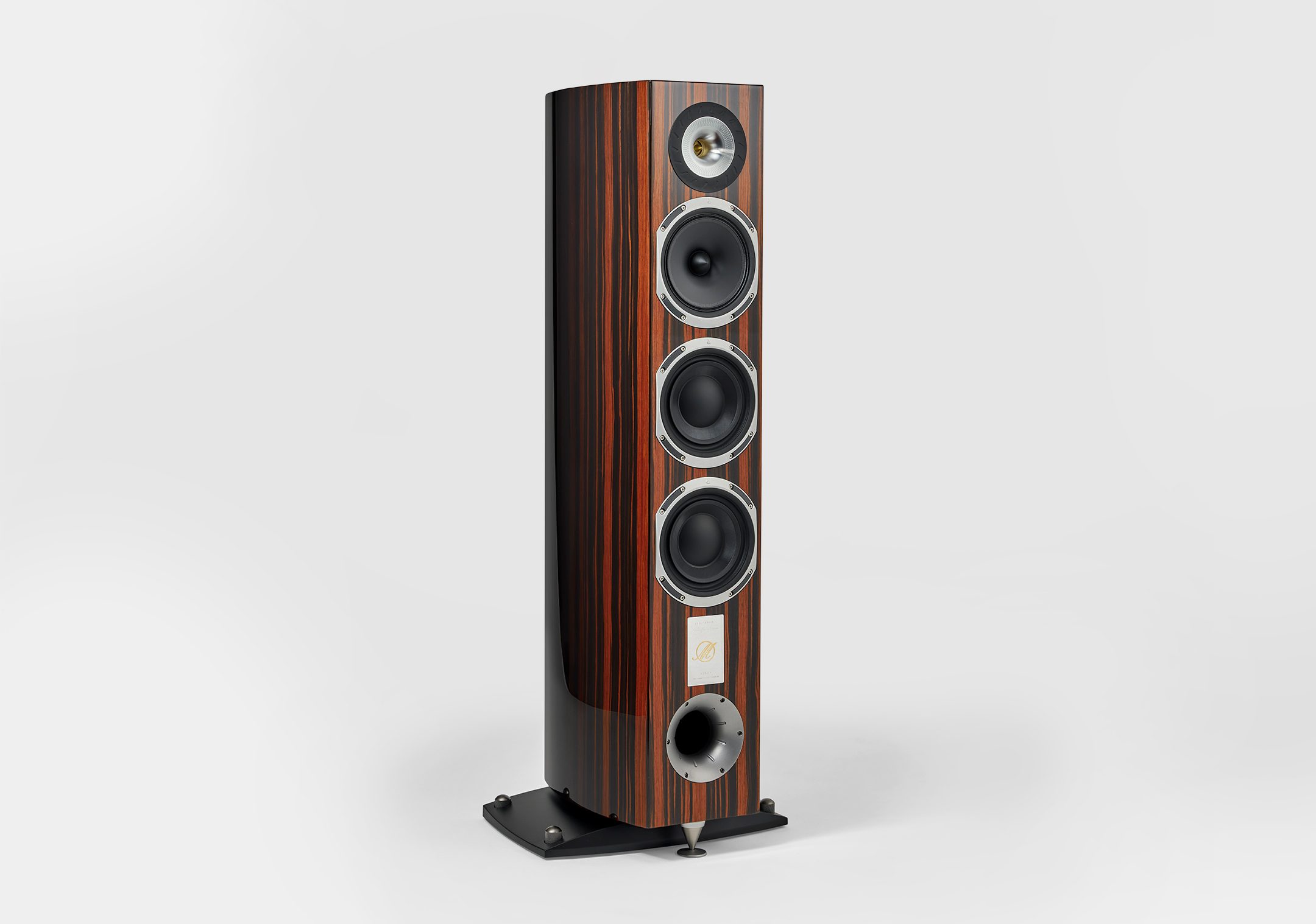 Габариты 3-полосного флагмана серии Quatuor 40th — 425 x 370 x 1340 мм, масса одной колонки 47 кг. Диапазон частот 33 Гц – 30 кГц (+3 дБ), номинальный импеданс 8 Ом, чувствительность 91 дБ.